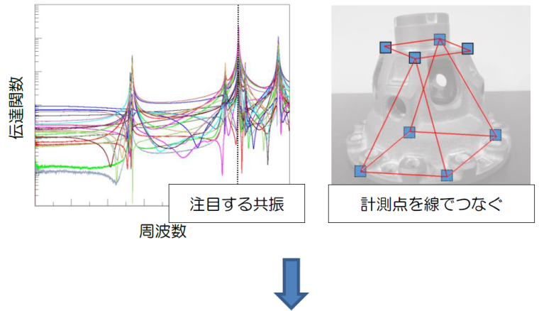 また、共振が発生している周波数での振動モードを可視化することにより、対策が必要な場所を特定することができます。