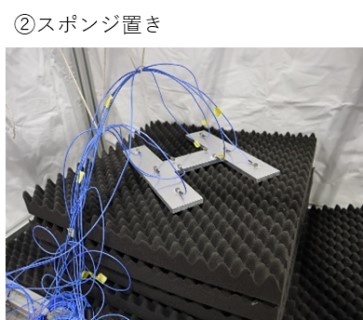一方、対象物の形状等によって吊り下げができない場合はスポンジ置き条件で実施する場合もあります。