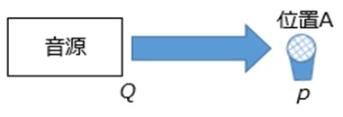 音源から発生している音の体積加速度:Q[m3/s2]・・・同定する値