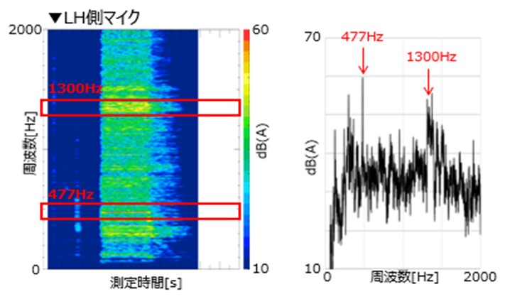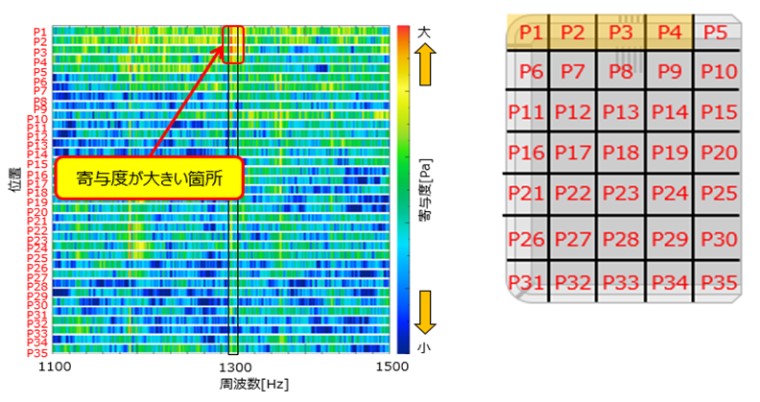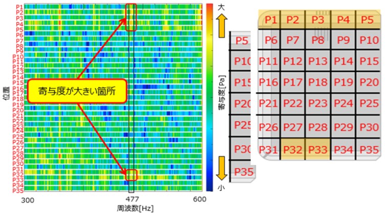 ➡各周波数(477Hz、1300Hz)に対して寄与率が大きい部位を特定することができました。
