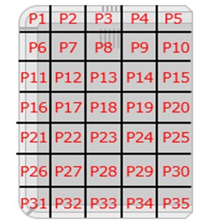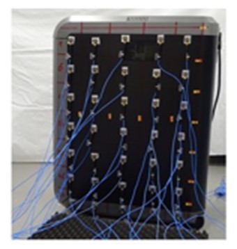 シュレッダーの左側側面を0.1mごとに区切り、加速度センサーを貼り付け、シュレッダー稼働時の振動を測定