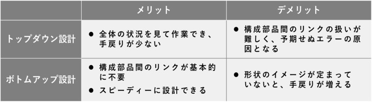 前回のコラムでは、「ボトムアップ設計」のメリットとして、図面などで形が決まっているためスピーディーに設計できる点を挙げていました。