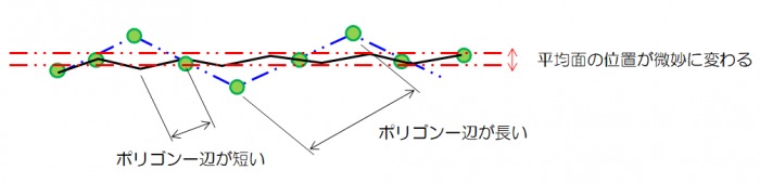 STLデータのポリゴン一辺の長さを調整しないと、平均面の作成される位置が微妙に変わります。