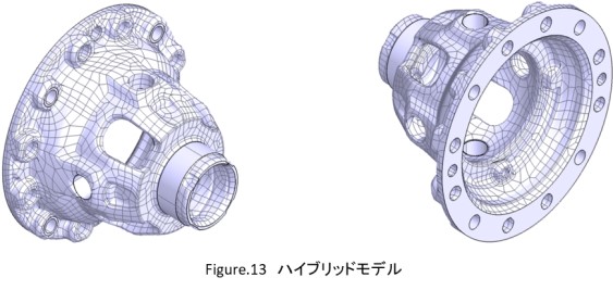 CADデータも大きく3つに分類され、代表的なものはオートサーフェスモデル(figure.11)、フルリバースモデル(figure.12)、ハイブリッドモデル(figure.13)になります。