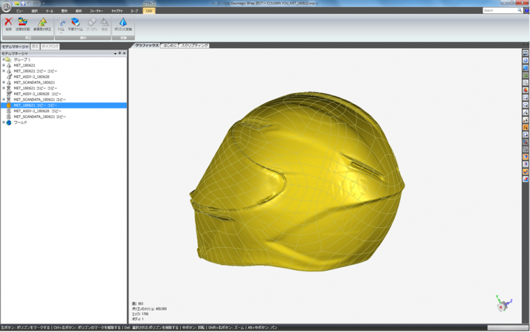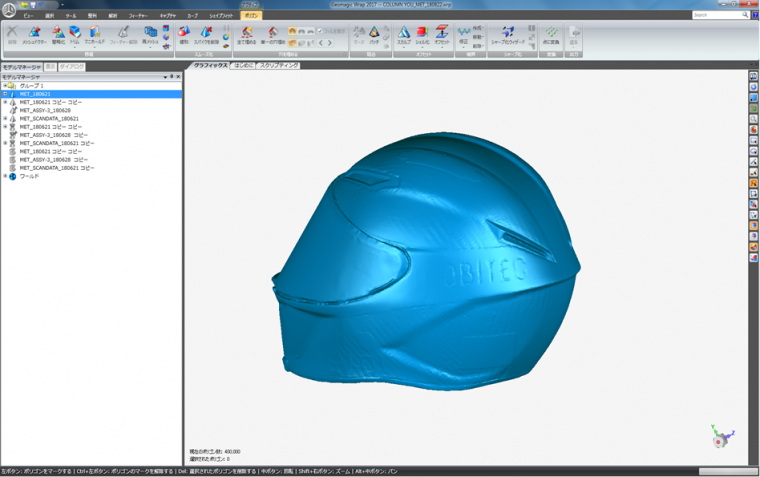 ②:従来から取付いているフィンを外したヘルメットのみのスキャンしたSTLデータです。