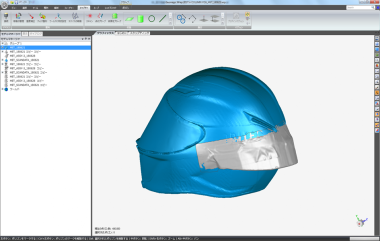 ③:従来から取付いているフィンを外した、位置合わせ後のヘルメットのみをオートサーフェス化しました。