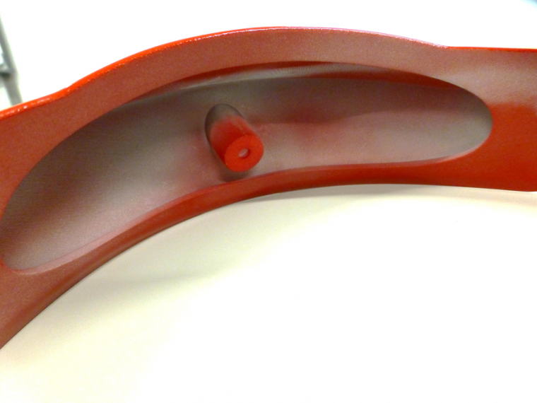ライダーの首への負担を少しでも軽減させる為、フィンの裏側に肉抜き形状を作成して軽量化を図りました。