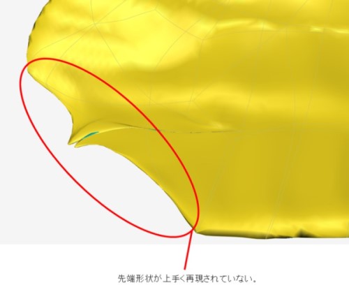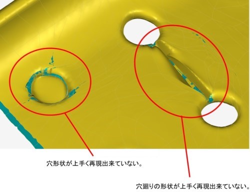 2.一つ一つの面がうろこ状になる為、その後に本データを使用して寸法定義したCAD修正を行う事が難しいです。