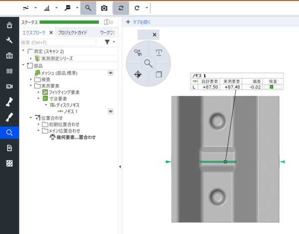 「幾何公差のクイック作成」以外にも、「ノギス機能」を使って指定した2点間ポイントを測定できます。