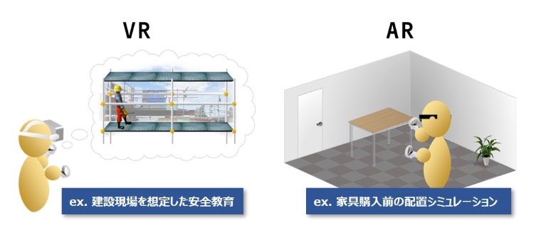 今回は最も多く使われており、実用化された実績も多いAR、VRを中心に説明します。