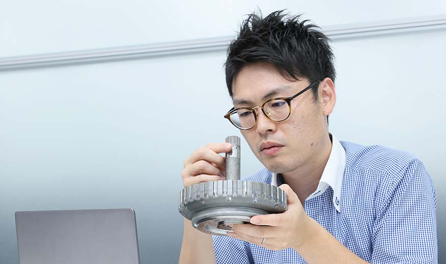 昔から無類の車好きなんですが、中でも、トランスミッションのギアが噛み合う、変速するといった複雑な機構、メカメカしさに魅力を感じていました。だからこそ、大学時代からパワートレイン、その中でもトランスミッションの設計がしたいという強い想いがあって、希望が叶うモビテックに入社したんです。入社後は、主に、ギアトレインの品質改善業務に携わってきました。