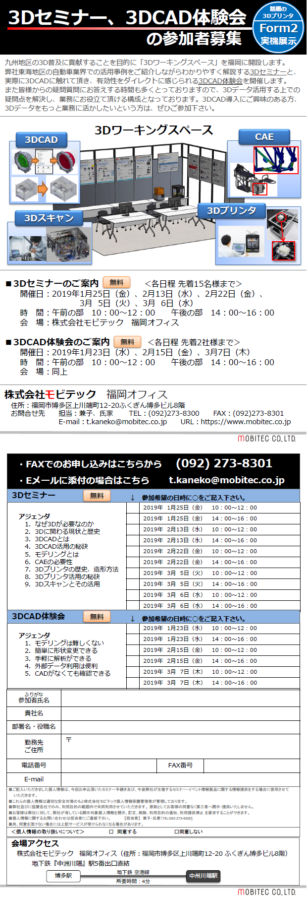 【企業向け】3Dセミナー、3DCAD体験会を開催します(福岡オフィス)